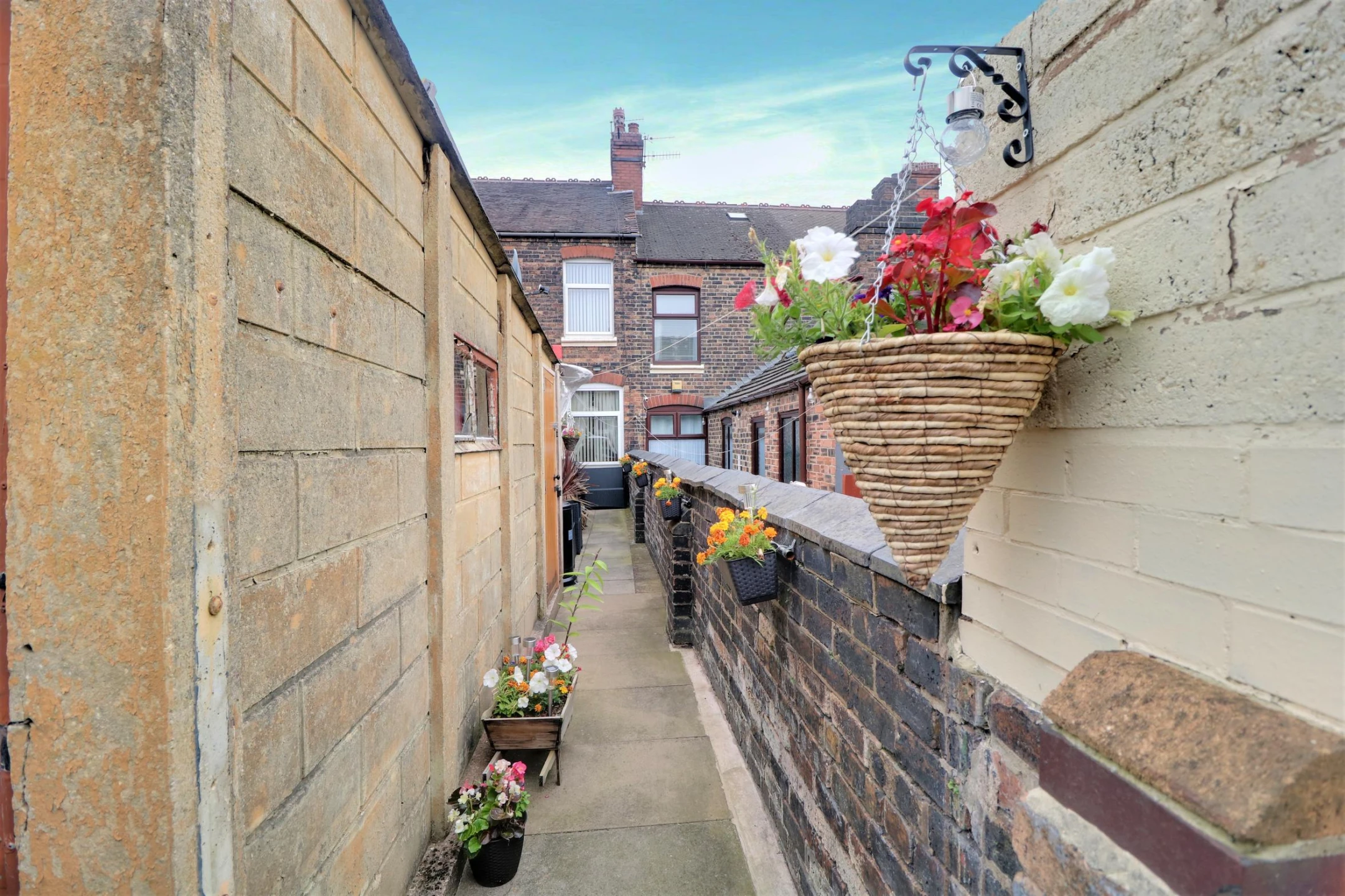 Low maintenance paved rear garden with access to the garage, which has power and lighting. There is currently a brick wall stopping access to the garage from the rear access path but this can easily be removed. Also, gated access to the rear access path.