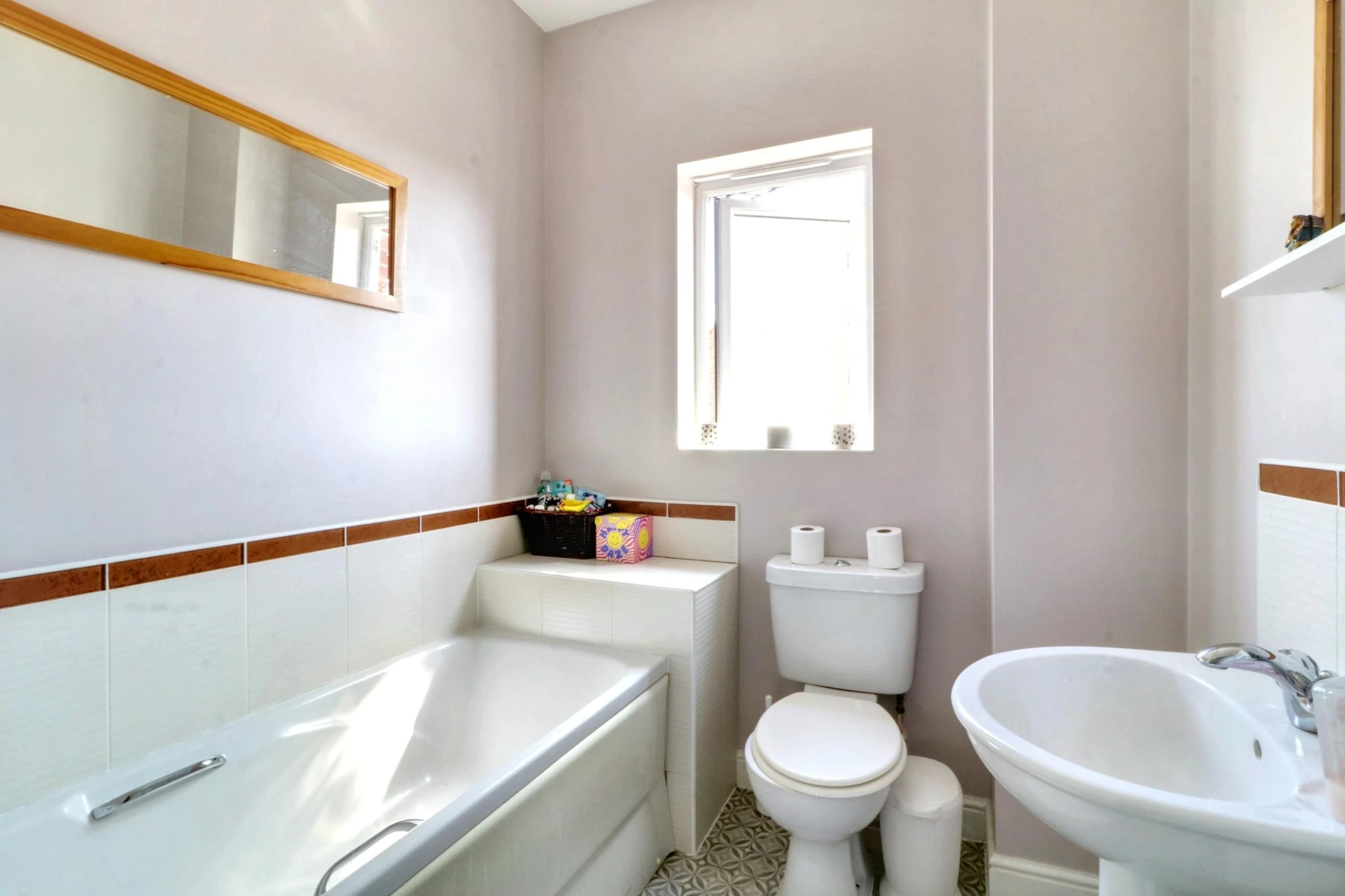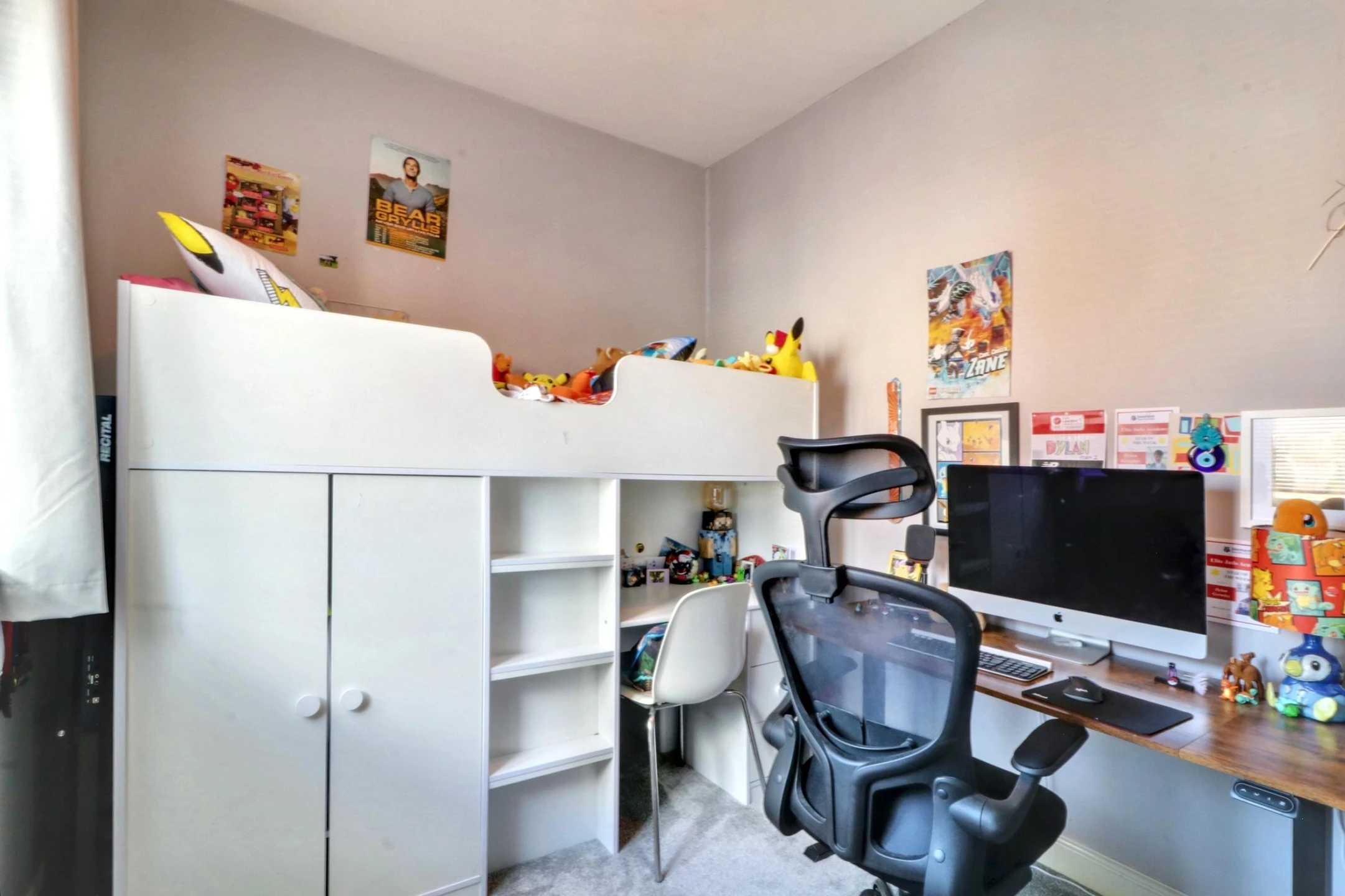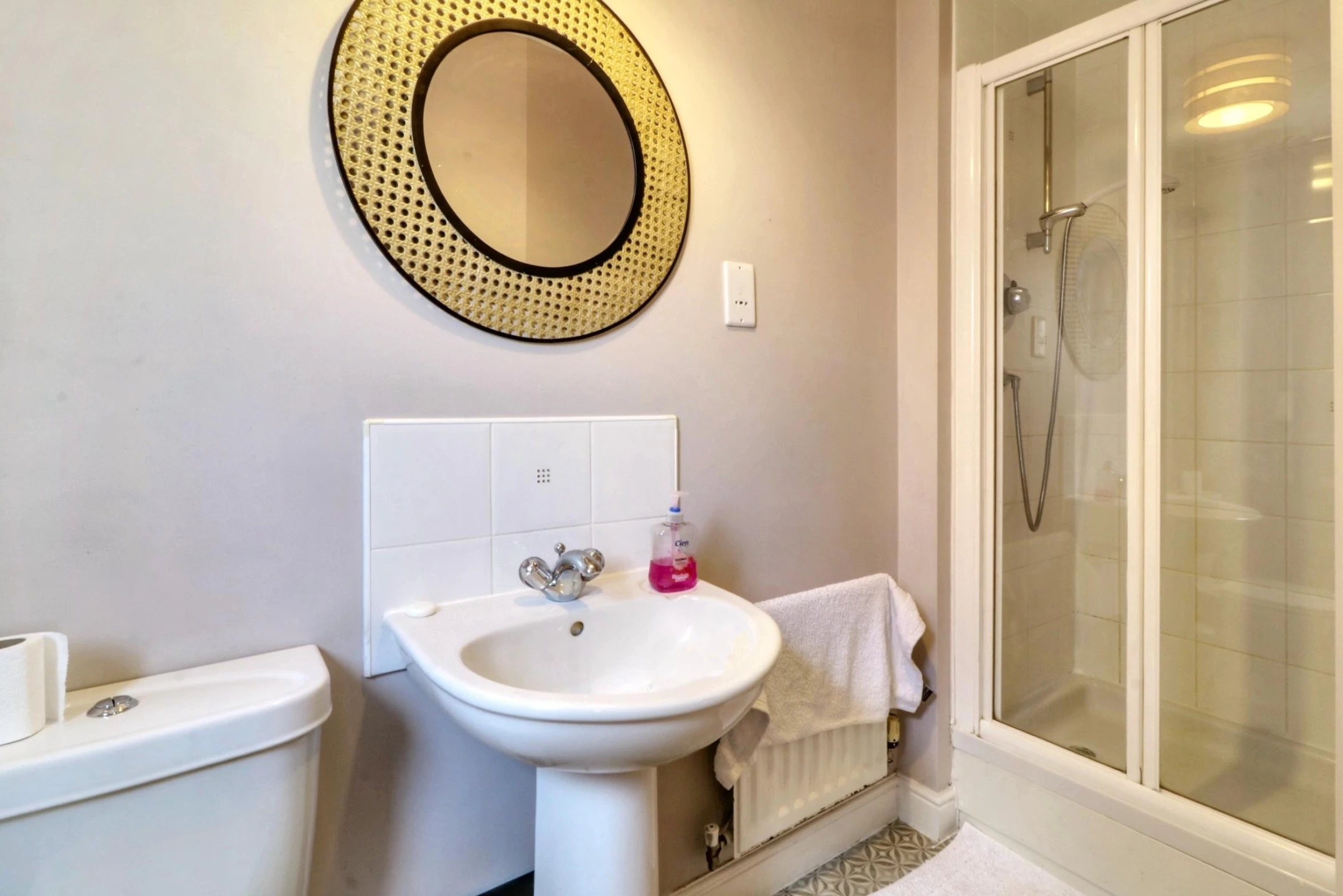 On the first floor, the property boasts two well-portioned bedrooms, each with plenty of natural light and room for freestanding furniture. One of the bedrooms also has a ensuite shower room. On the second floor, you will find two/three which are bright and adaptable, ideal as a bedroom, home office, or playroom. A family bathroom completes the upper floor, featuring a bathtub, overhead shower, sink, and WC.