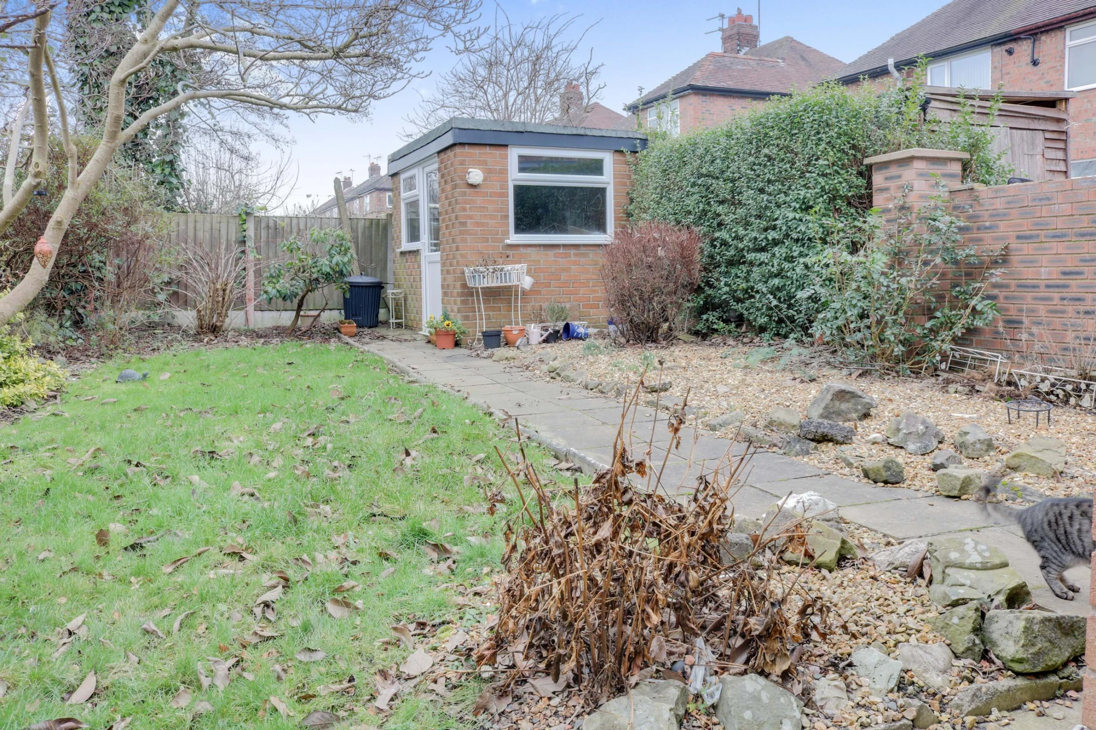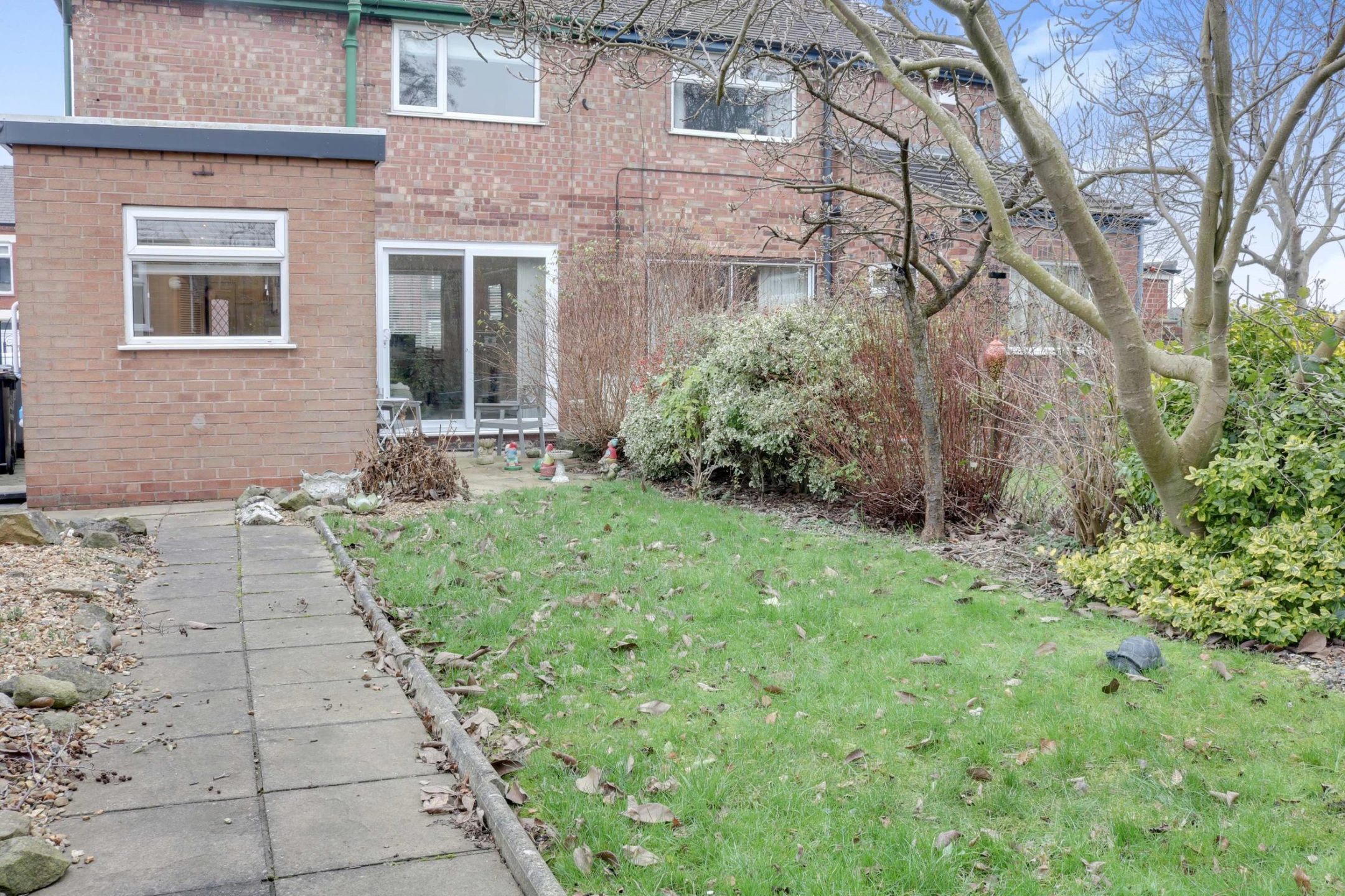 The front garden is mainly laid to lawn with a range of mature shrubs and hedges with pathway leading to the rear private garden which is also mainly laid to lawn, patio area, brick shed and a range of mature shrubs, plants and trees.