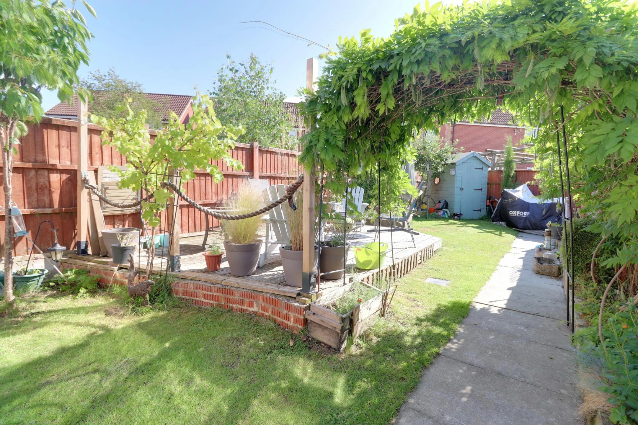The generously sized rear garden is a true highlight, featuring a delightful decking area, perfect for outdoor seating, featuring lush green lawn space and established planted borders.