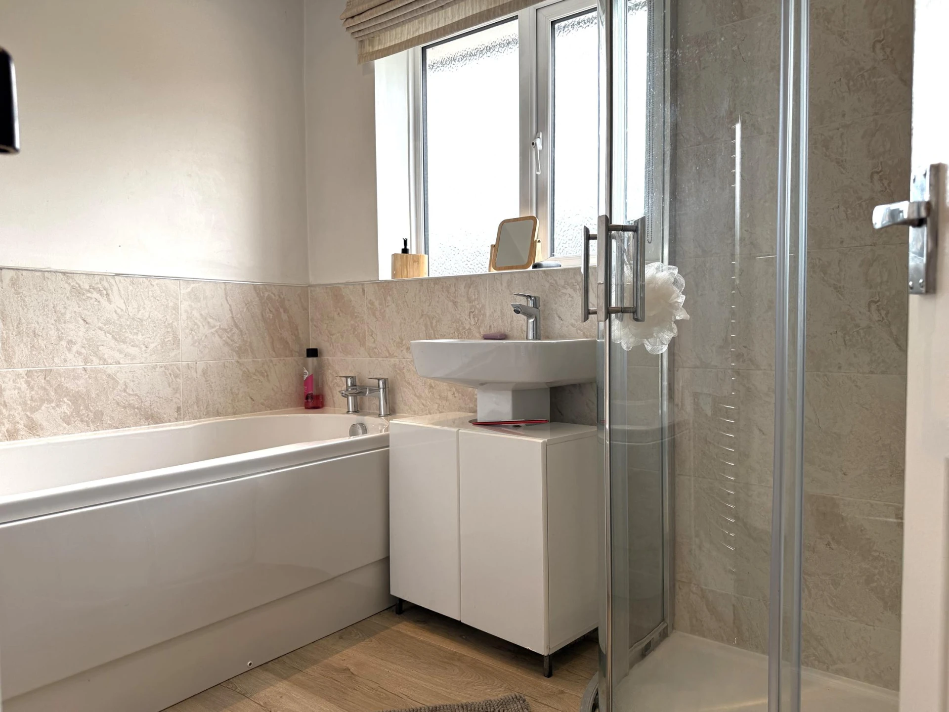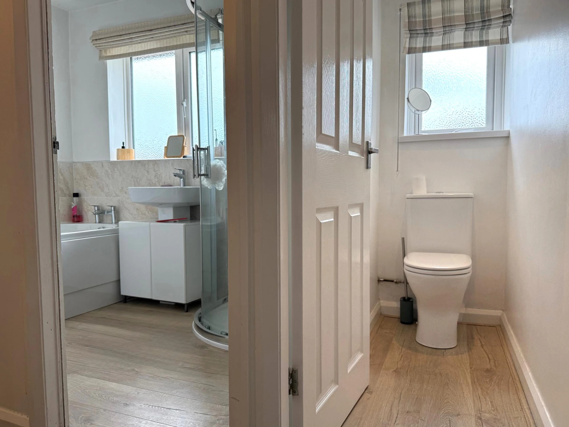 To the first floor there are five bedrooms, the bathroom with free standing shower unit, bath and basin, plus separate WC.