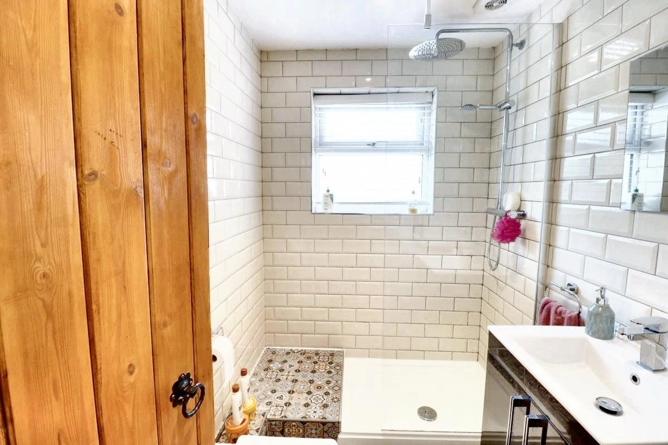 Stylish Bathroom – Features a contemporary design with a luxurious walk-in rain shower, perfect for a modern lifestyle.