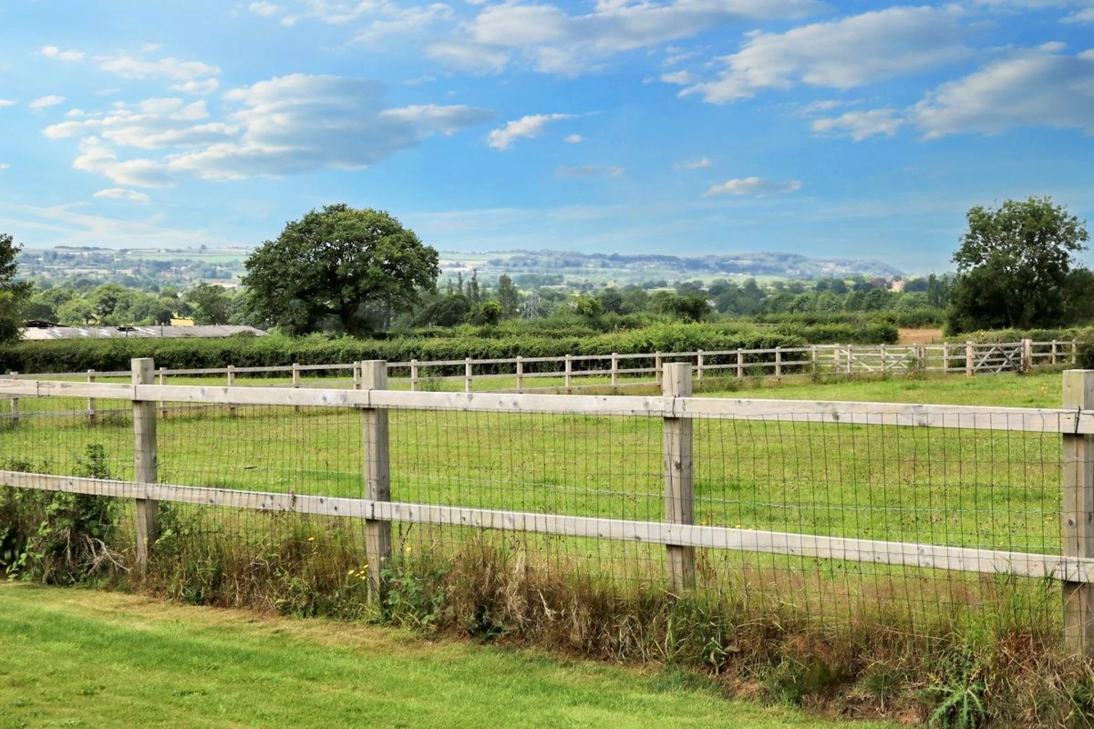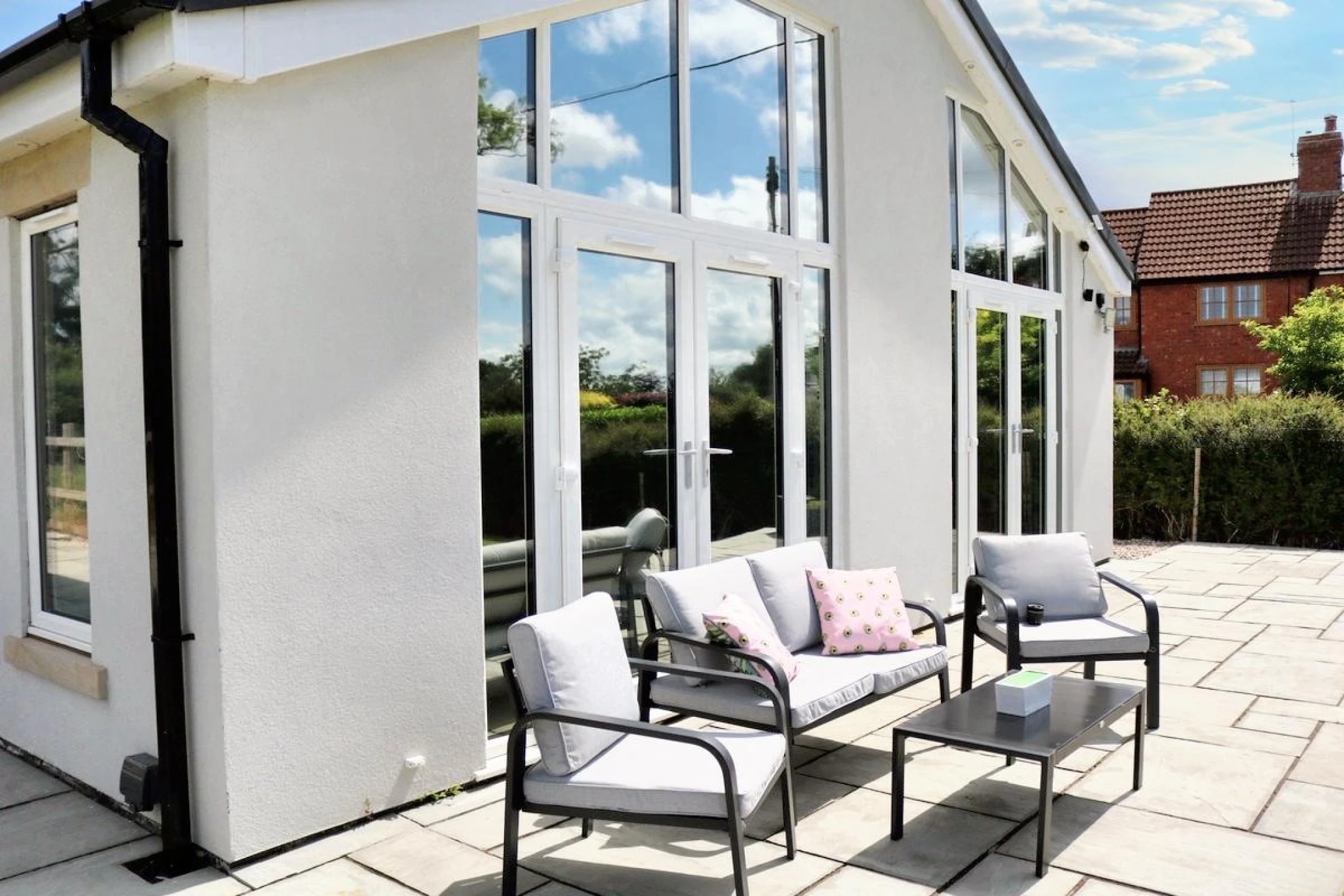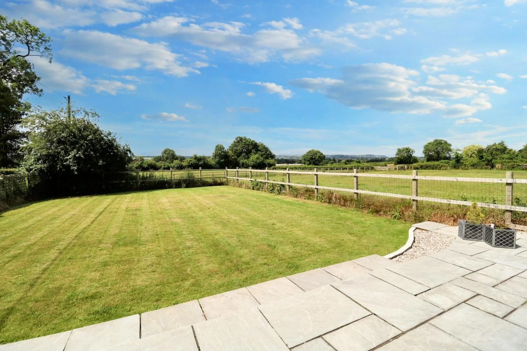 A welcoming, light-filled space with large glass windows and doors that open directly onto the garden, creating a seamless indoor-outdoor flow. Ideal for relaxing or entertaining, with stunning views of the open countryside. The modern fitted kitchen is stylish and fully fitted with premium fixtures and fittings, the kitchen offers ample storage, integrated appliances, and a sleek design that complements the open-plan layout.